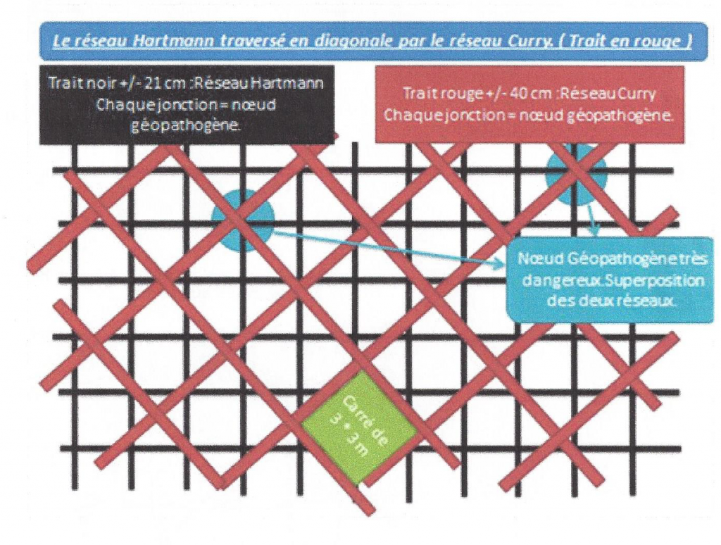 Les réseaux telluriques (Hartmann, Curry, etc.) : ces maillages énergétiques naturels de la Terre deviennent nocifs lorsqu’ils croisent certains points sensibles d’une habitation.